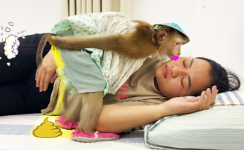 What Are You Doing? Monkey Lyly Gives a Smelly Kiss to Wake Her Mom Up to Help Her!