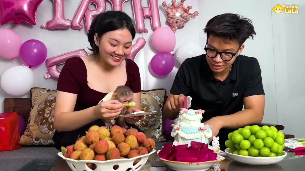 It was a bright and cheerful morning, and today was a very special day in the houseโit was Baby Monkey Lalaโs birthday! ๐๐ From the moment she woke up, little Lala was full of excitement and curiosity. She could feel that something fun was happening, but no one had told her what the surprise was yet.