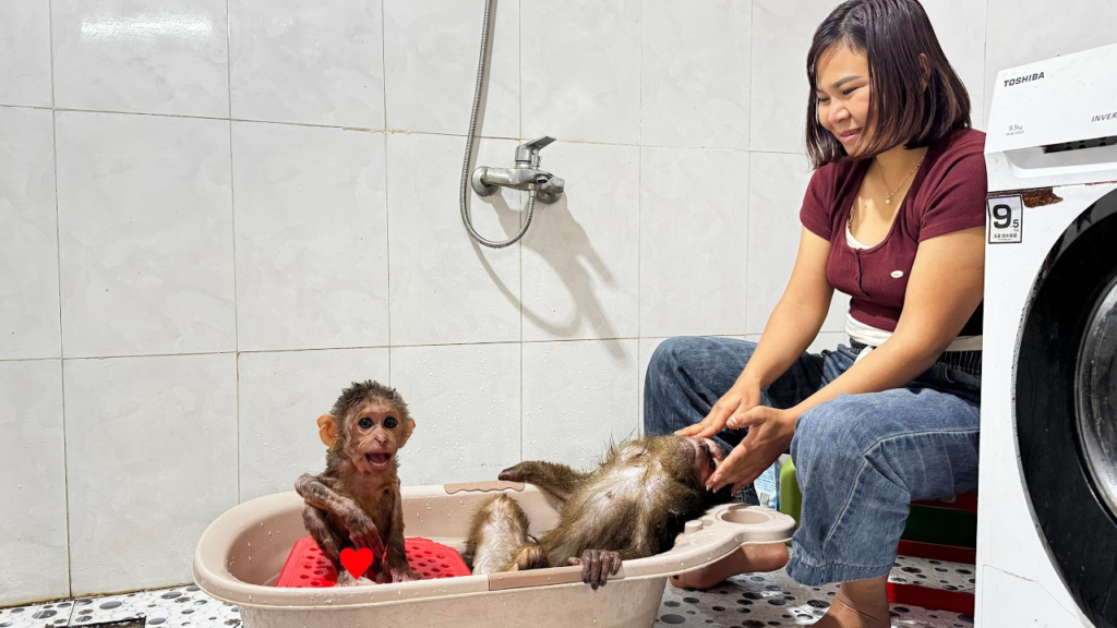 After the bath, Mom surprised them with their favorite snacks. CUTIS happily munched away while Buem clapped with joy, clearly loving the delicious treat. Mom then gave them both a gentle massage, rubbing their little backs and heads to help them relax. The special care made them feel loved, safe, and incredibly happy.