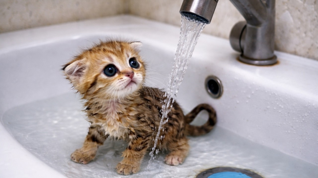 Everything seemed perfectly ordinary when the tiny kitten was brought home. With soft fur, bright eyes, and a gentle meow, she quickly stole everyone’s hearts. She explored every corner of the house, chased dust particles in the sunlight, and curled up in the warmest spots for long naps. No one suspected that her first bath would turn into a moment no one would ever forget.