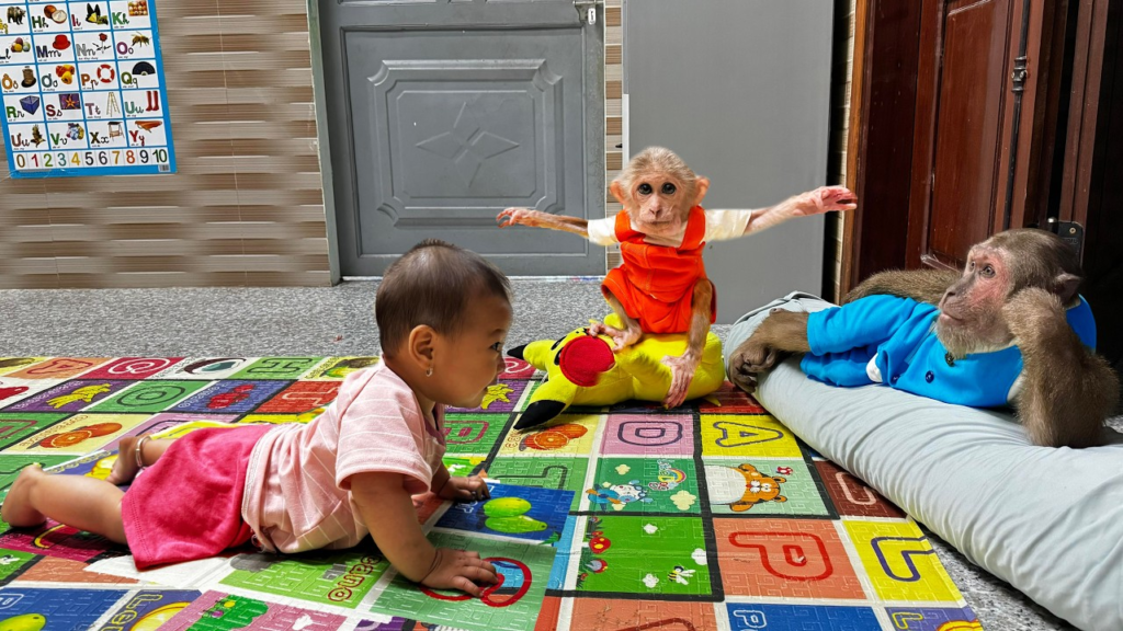 CUTIS gently shook a colorful toy in front of the baby, making Yen Nhu giggle happily. Buem sat beside her, trying to sing a silly lullaby that made everyone laugh. The room was filled with smiles, and the two young babysitters felt proud of themselves. But only a few minutes later, the peaceful moment turned into total chaos.