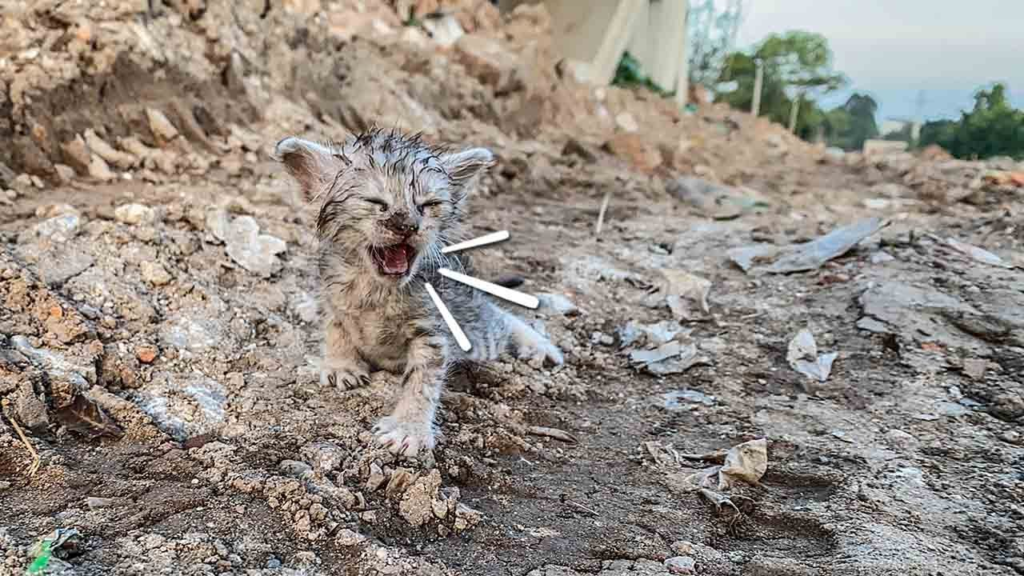 In the quiet middle of nowhere, where only the sound of wind moved through the tall grass, a tiny kitten cried helplessly for its mother. Its soft meows echoed through the empty field, full of fear, hunger, and loneliness. The poor little kitten had been abandoned, left all alone with no warmth, no food, and no one to comfort it. Its small body trembled as it searched around, hoping to find its mother nearby, but there was nothing except endless space and silence.