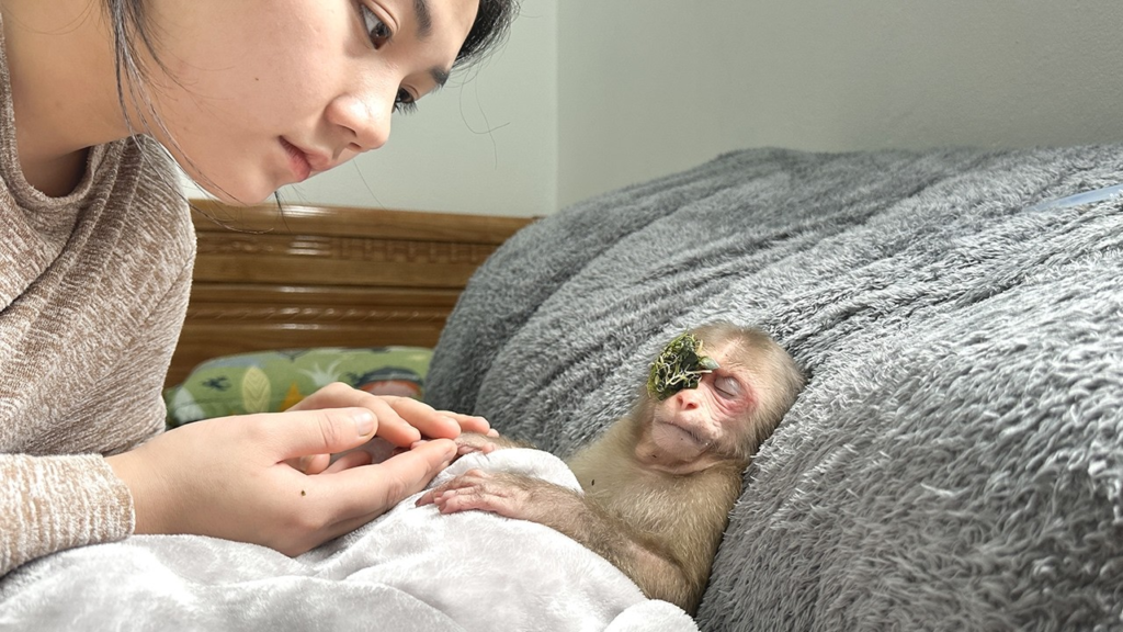 One sunny morning, little Lala the baby monkey woke up feeling strange. She rubbed one side of her face with her tiny hand and let out a soft whimper. Mom quickly noticed that Lala’s right eye looked swollen and puffy. It was almost half closed, and poor Lala seemed uncomfortable.