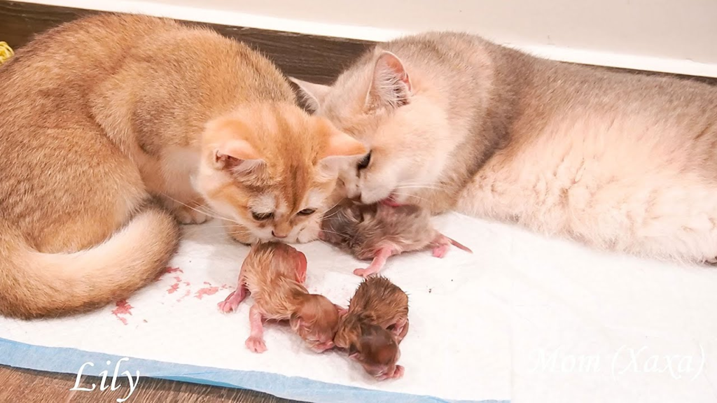 Lily’s Older Sister Is Very Excited and Eager to Play with Xaxa’s Newborn Kittens