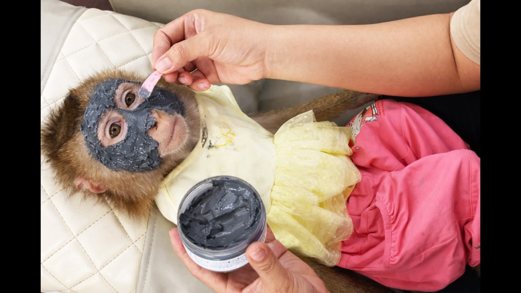 One calm evening, Monkey Lyly sat quietly beside her mother, watching every little movement with wide and curious eyes. Her mother was doing her usual facial skincare routine in front of the mirror—gently washing her face, applying soft cream, and patting her skin with careful hands. Lyly was completely fascinated. Every step looked so elegant and interesting that she couldn’t stop staring.