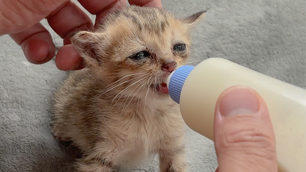 When kind rescuers gently picked the kitten up, they could feel how fragile and hungry it was. Its tiny paws clung tightly to the blanket wrapped around it, as though it was afraid of being left alone again. The saddest moment came when they prepared a small bottle of warm milk and carefully brought it to the kitten’s mouth.